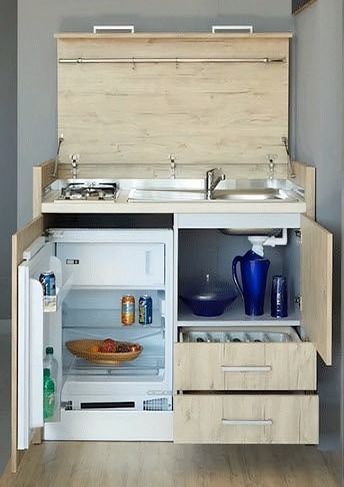 Discover our compact kitchens with four models in up to five colour options. Each pack includes everything you need for your space-saving kitchenette.